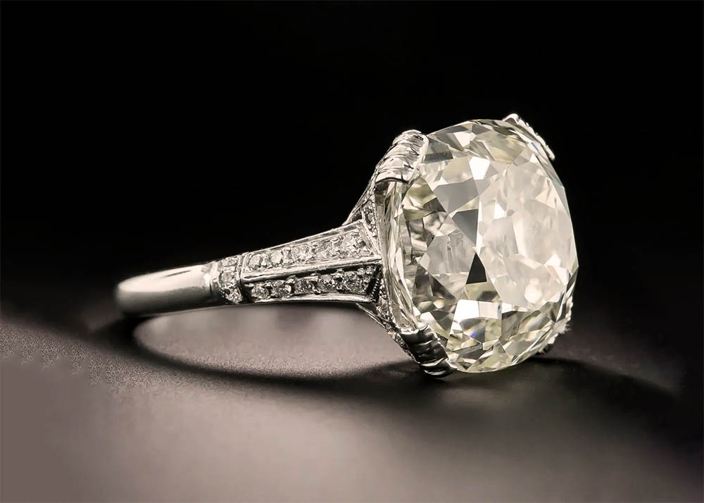 Cuts: Look for step-cut diamonds or old European cuts, as these were the precursors to today’s round brilliant diamonds.